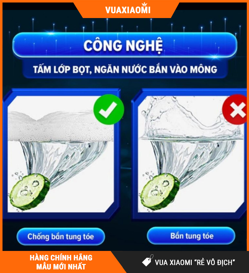 Lớp bọt này hoạt động như lá chắn mềm: ngăn tia nước bắn ngược lên, giữ vệ sinh toàn diện