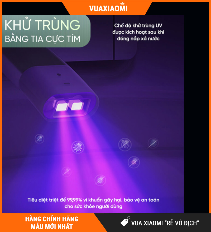 Tia UV diệt khuẩn 99,9% các vi sinh gây hại trên đầu vòi rửa và khu vực bệ ngồi
