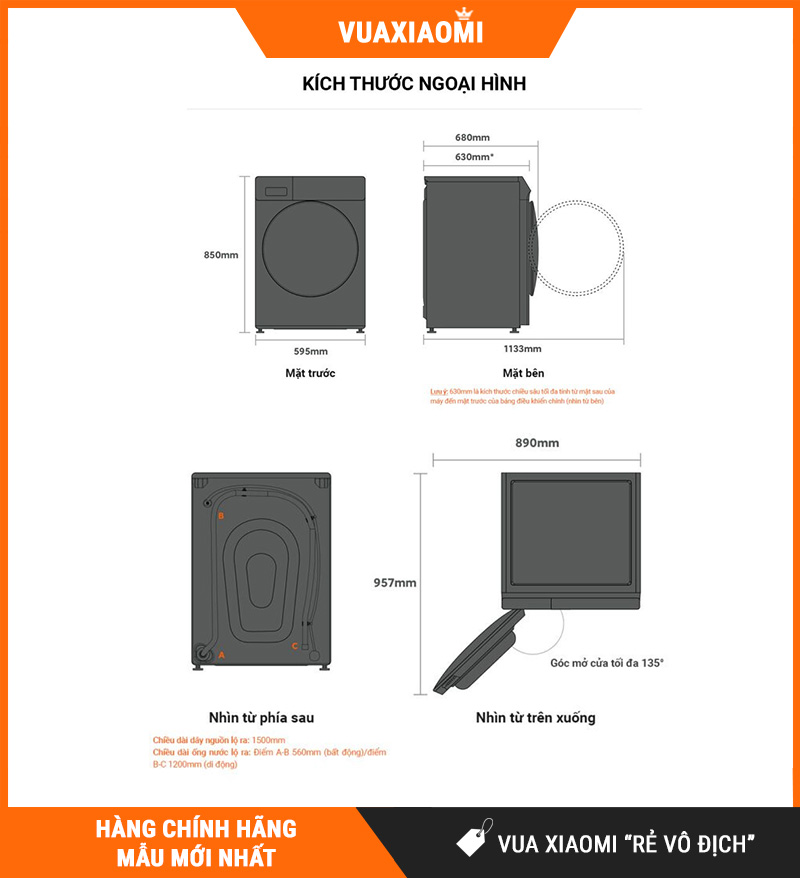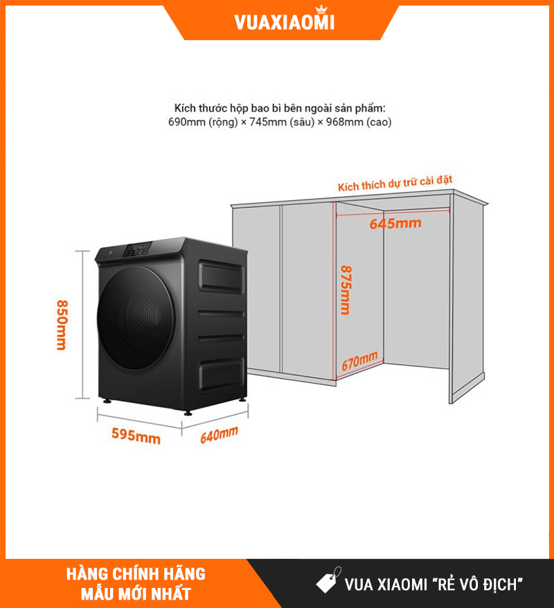 | Kích thước máy (DxRxC) | 595 × 640 × 850 mm |