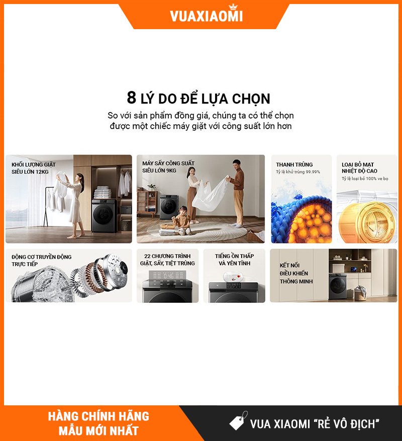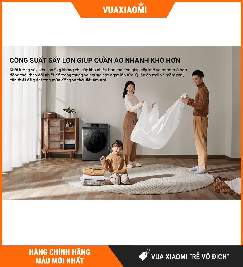 Sản phẩm sở hữu thiết kế tối giản, đẹp mắt theo phong cách Xiaomi, tích hợp khối lượng giặt lên tới 12kg – sấy 9kg, cùng với hàng loạt công nghệ mới như: