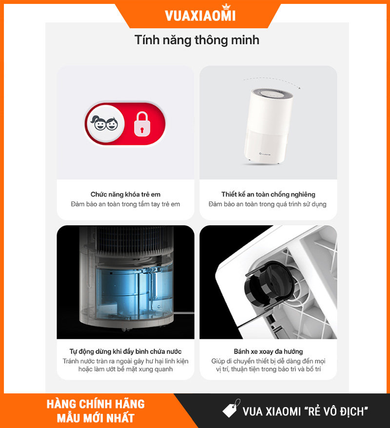 Máy có thiết kế gọn đẹp, dễ bố trí ở nhiều vị trí mà không chiếm nhiều diện tích. Đi kèm bánh xe linh hoạt, Lumias D3T-PLUS giúp bạn di chuyển nhẹ nhàng giữa các phòng để xử lý ẩm đúng khu vực cần thiết—đặc biệt tiện khi nhà có nhiều “điểm ẩm” như góc tường, tủ quần áo hoặc gần ban công.