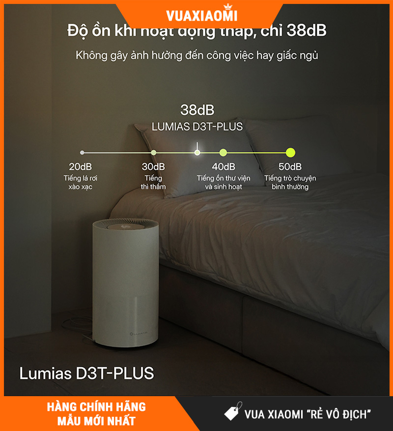 Lumias D3T-PLUS vận hành êm với độ ồn ≤38dB(A), phù hợp sử dụng trong phòng ngủ hoặc phòng làm việc. Bạn có thể để máy hoạt động lâu để duy trì độ ẩm ổn định mà vẫn giữ không gian yên tĩnh, thoải mái khi nghỉ ngơi và tập trung.