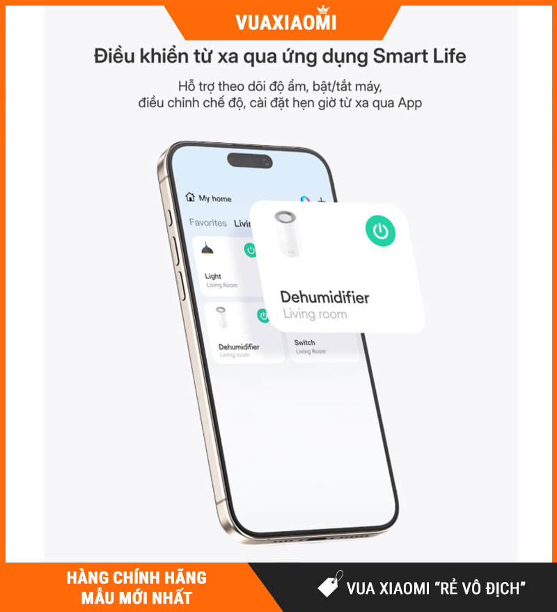 D3T-PLUS hỗ trợ Wi-Fi (2.4GHz) + Bluetooth 5.0, cho phép điều khiển qua ứng dụng Smart Life. Bạn có thể bật/tắt từ xa, chuyển chế độ nhanh, theo dõi và điều chỉnh linh hoạt theo nhu cầu—dù đang ở phòng khác hay ngoài nhà. Rất phù hợp cho người bận rộn muốn chủ động không gian khô thoáng trước khi về nhà.