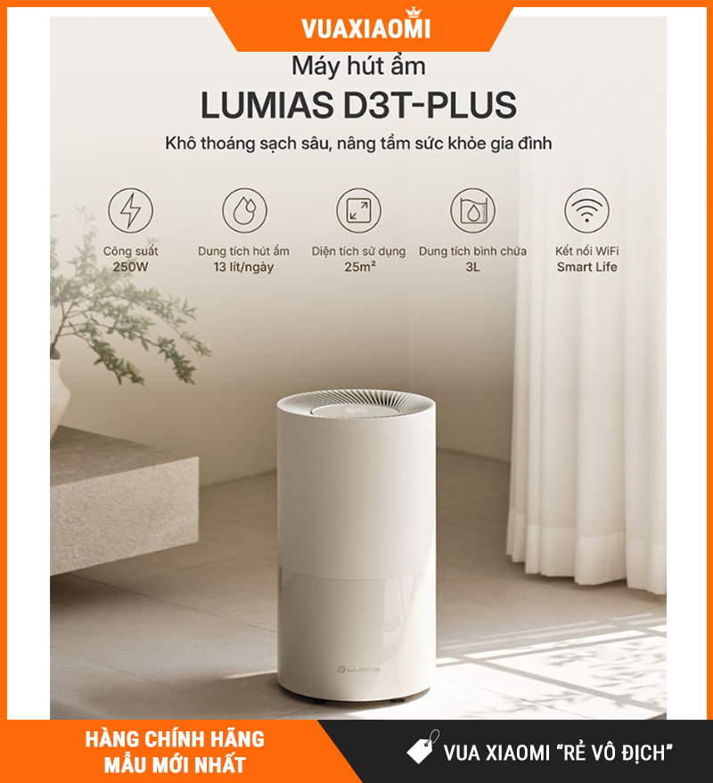 Nếu bạn cần một chiếc máy hút ẩm êm ái – thông minh – tiện lợi cho gia đình, Lumias D3T-PLUS là lựa chọn đáng cân nhắc. Sản phẩm hội tụ hiệu suất hút ẩm mạnh 13L/ngày, gió 140m³/h, 3 chế độ linh hoạt, Wi-Fi + Bluetooth điều khiển từ xa, cùng bình 3L + xả liên tục và nhiều tính năng an toàn giúp sử dụng nhàn hơn, yên tâm hơn trong mùa nồm ẩm.