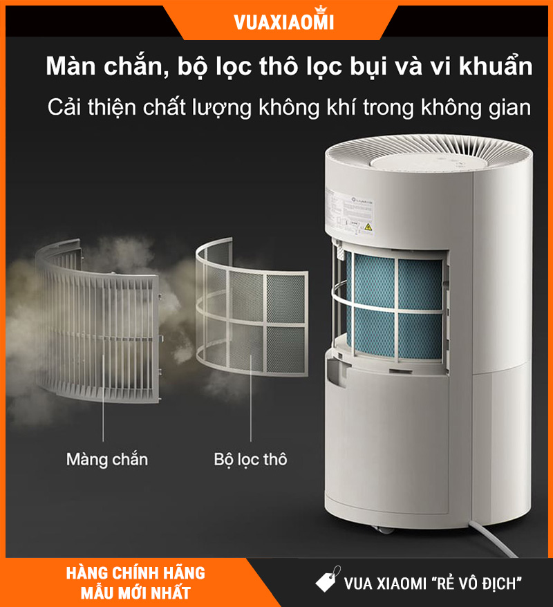 Máy trang bị màn chắn và bộ lọc thô giúp giữ lại bụi lớn, sợi vải, lông thú… khi không khí đi qua. Nhờ đó, luồng khí lưu thông dễ chịu hơn và hạn chế bụi bám sâu vào bên trong, góp phần duy trì hiệu suất ổn định theo thời gian. Việc vệ sinh định kỳ cũng đơn giản và nhanh gọn.