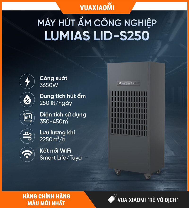 Nếu bạn cần máy hút ẩm cho kho/xưởng 350–450m², ưu tiên hút khỏe 250L/ngày, chạy bền theo ca dài, vận hành nhàn nhờ xả trực tiếp + bánh xe, đồng thời quản lý tiện hơn với WiFi + cảm ứng, thì Lumias LID-S250 là lựa chọn rất đáng cân nhắc.