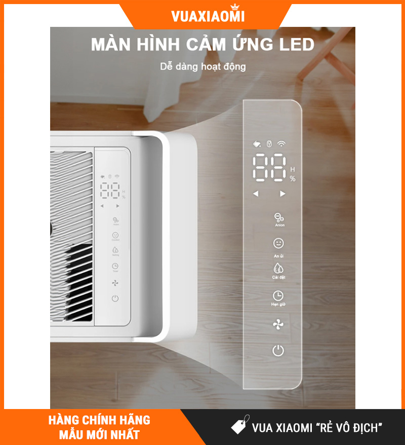 Máy được trang bị màn hình LED trực quan, hiển thị rõ các thông số như độ ẩm, chế độ hoạt động và trạng thái vận hành. Người dùng có thể tùy chỉnh nhanh chỉ với vài thao tác, rất phù hợp cho người không rành thiết bị gia dụng.