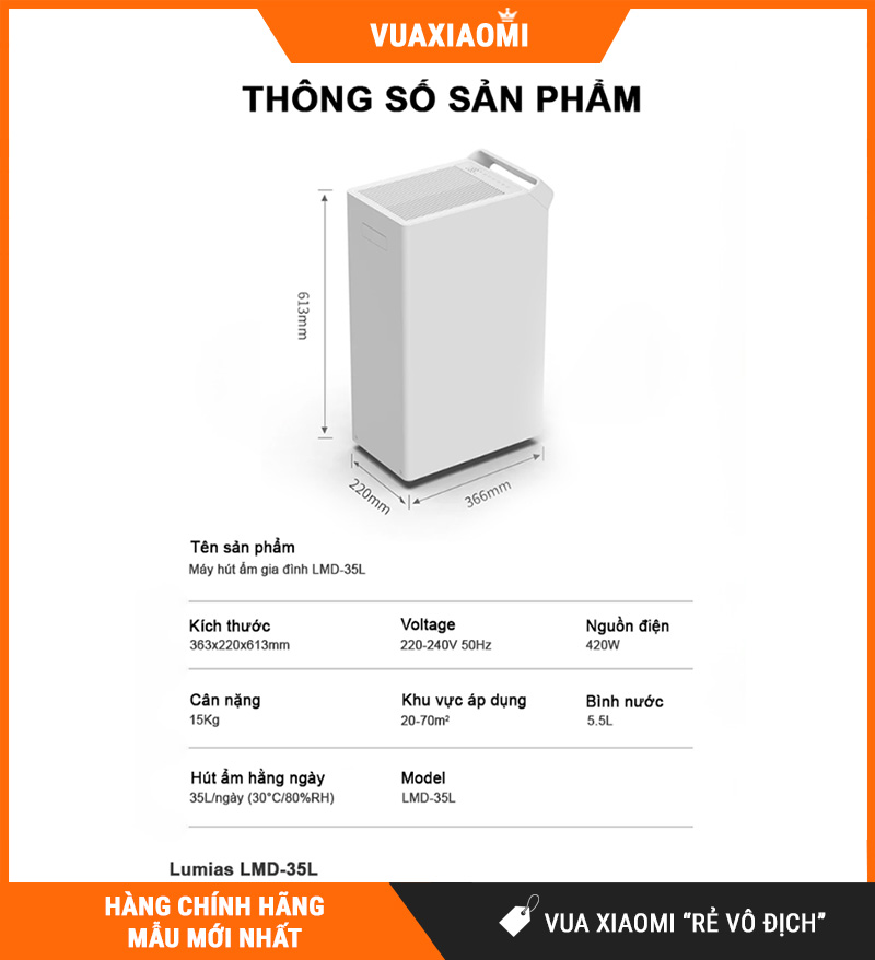 | Tên sản phẩm | Máy hút ẩm gia đình Lumias LMD-35L |