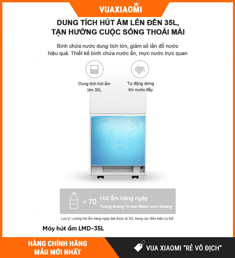 Công suất hút ẩm 35L/ngày hạn chế phải đổ nước thường xuyên