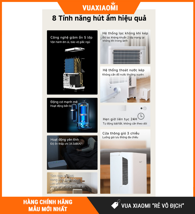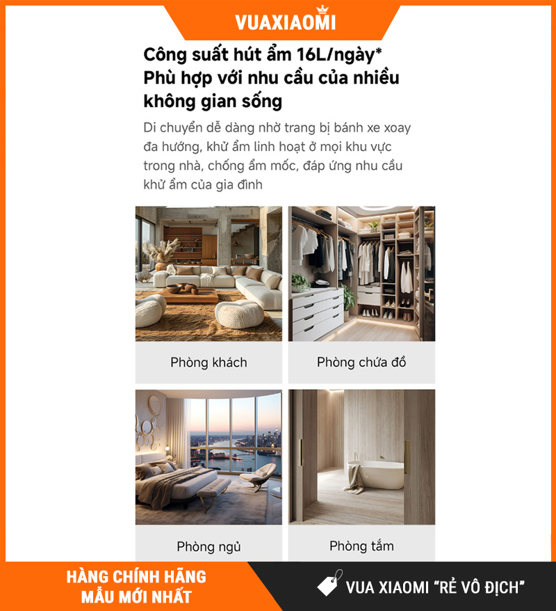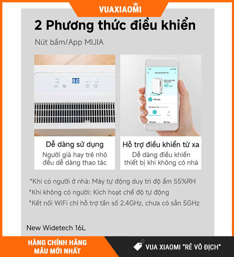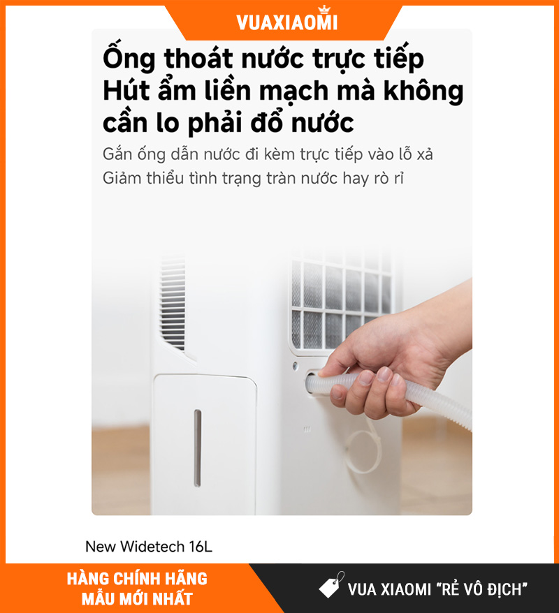 Nếu bạn đang cần một máy hút ẩm cho căn hộ/gia đình, ưu tiên hút mạnh 16L/ngày cho diện tích ≤ 35m², có hẹn giờ 24h, luồng khí 3D hỗ trợ hong khô quần áo, cảm biến nhạy, điều khiển Xiaomi Home, và đặc biệt siêu êm chỉ 34.5dB, thì NEW WIDETECH 16L (WDH33B16EW) là lựa chọn rất đáng chốt cho mùa nồm – mùa mưa ở Việt Nam.