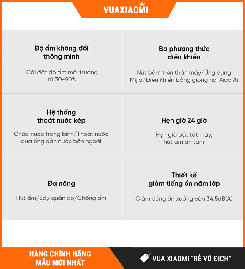 | Độ ồn khi hoạt động | 34.5 dB(A) (chế độ hút ẩm) |