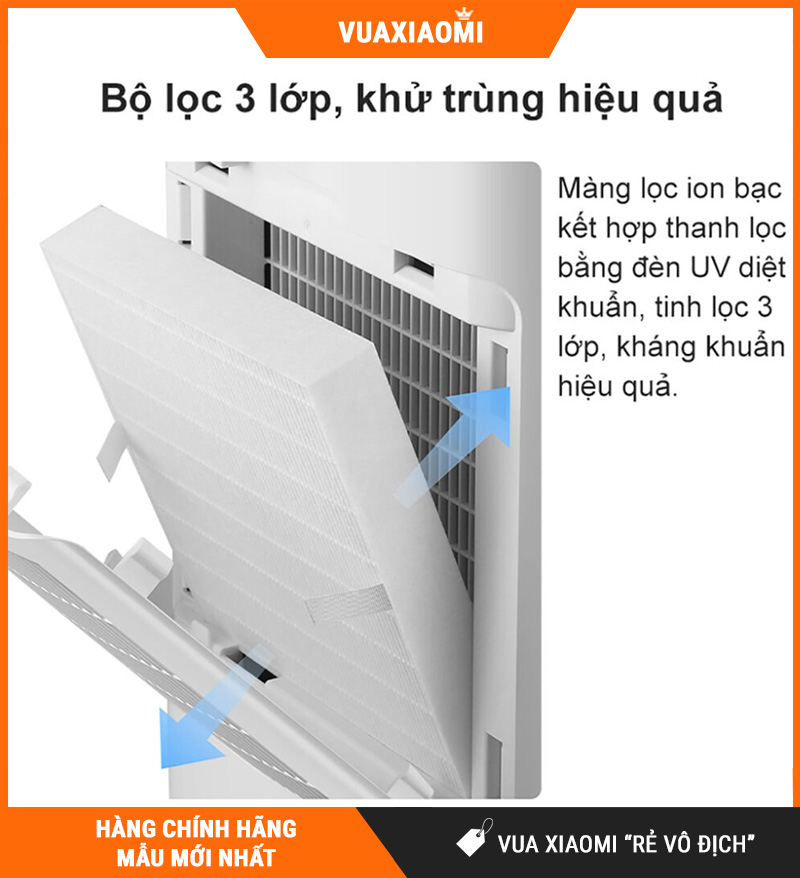 Khử khuẩn hiệu quả với bộ lọc 3 lớp