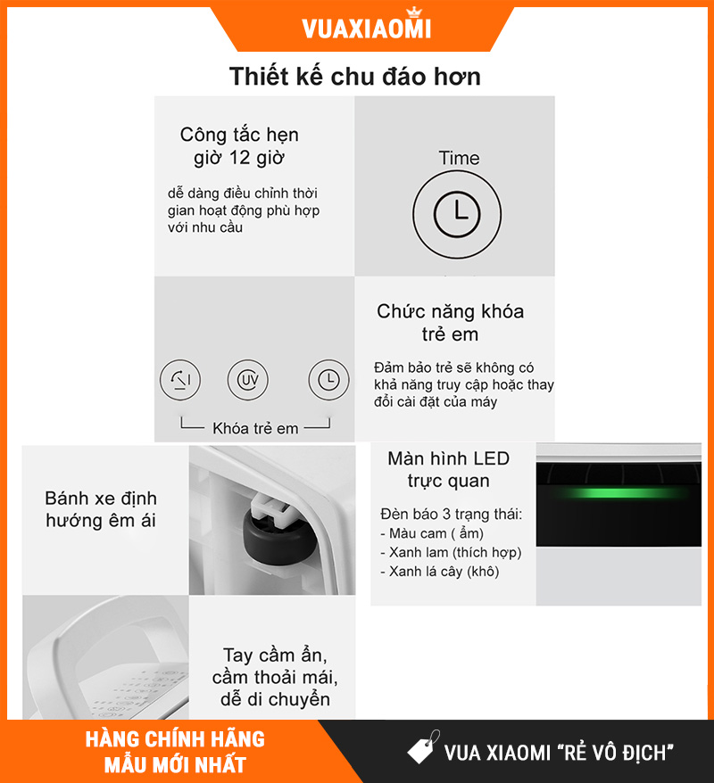 Hẹn giờ/tuỳ chỉnh: chủ động thời gian chạy theo lịch sinh hoạt.