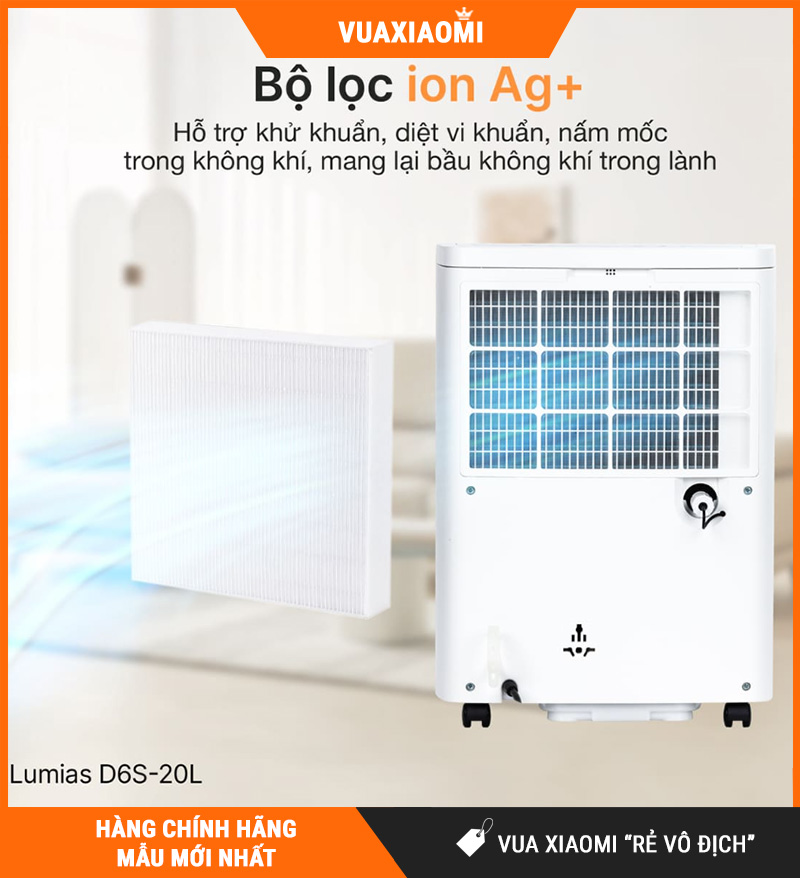 Không chỉ dừng ở hút ẩm, Lumias D6S-20L còn hỗ trợ cải thiện chất lượng không khí nhờ bộ lọc ion bạc:
