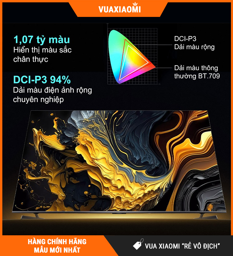 Được trang bị tấm nền QLED công nghệ Quantum Dot, tivi Xiaomi Max 100 mang đến dải màu DCI-P3 ~94%, độ chính xác màu cực cao và khả năng hiển thị 1.07 tỷ màu – một tiêu chuẩn thường chỉ có ở các dòng tivi chuyên nghiệp hoặc dùng trong studio.