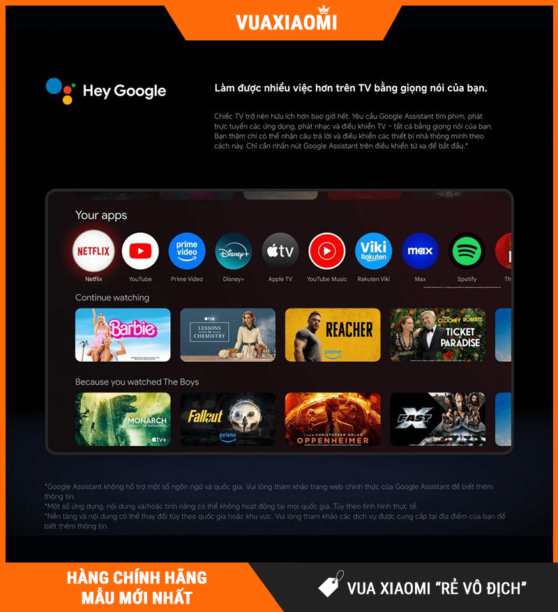 | Hệ điều hành | Google TV (mới nhất, hỗ trợ tiếng Việt) |