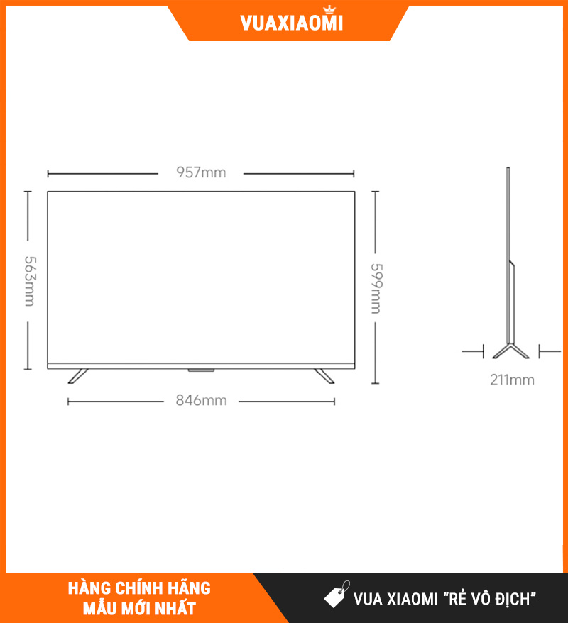 | Kích thước (có chân đế) | 957 × 211 × 599 mm |