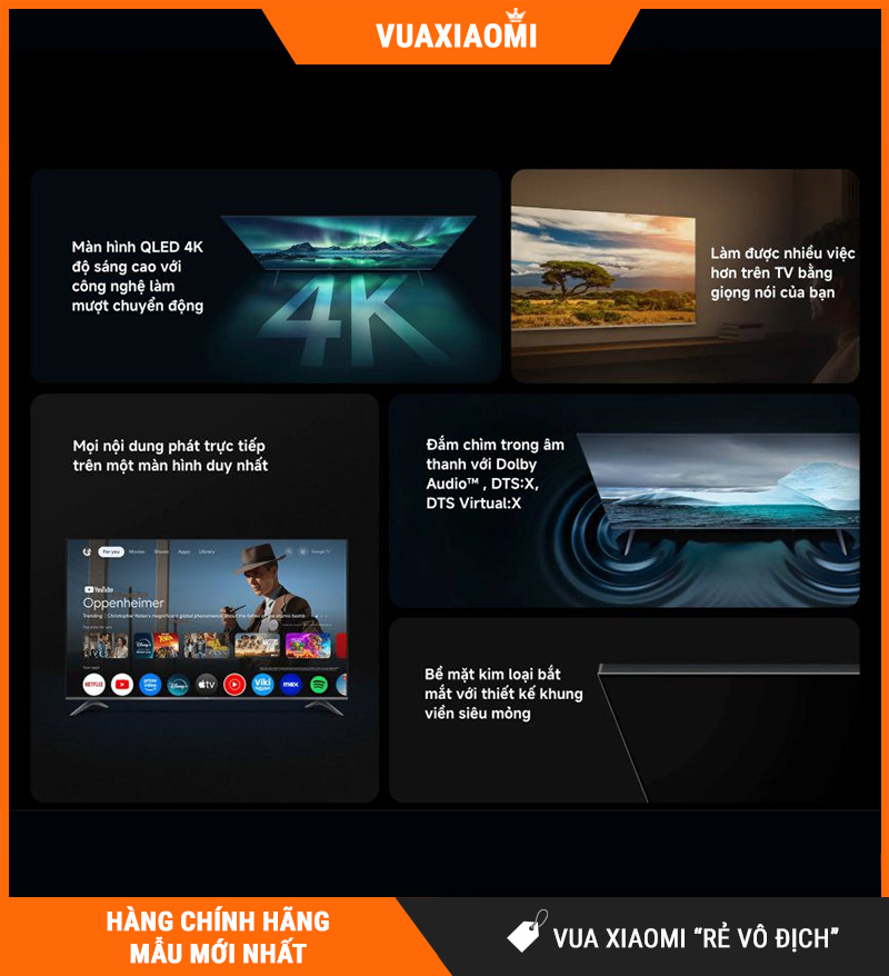 - Chất lượng hiển thị vượt trội với QLED – 4K – MEMC – HDR