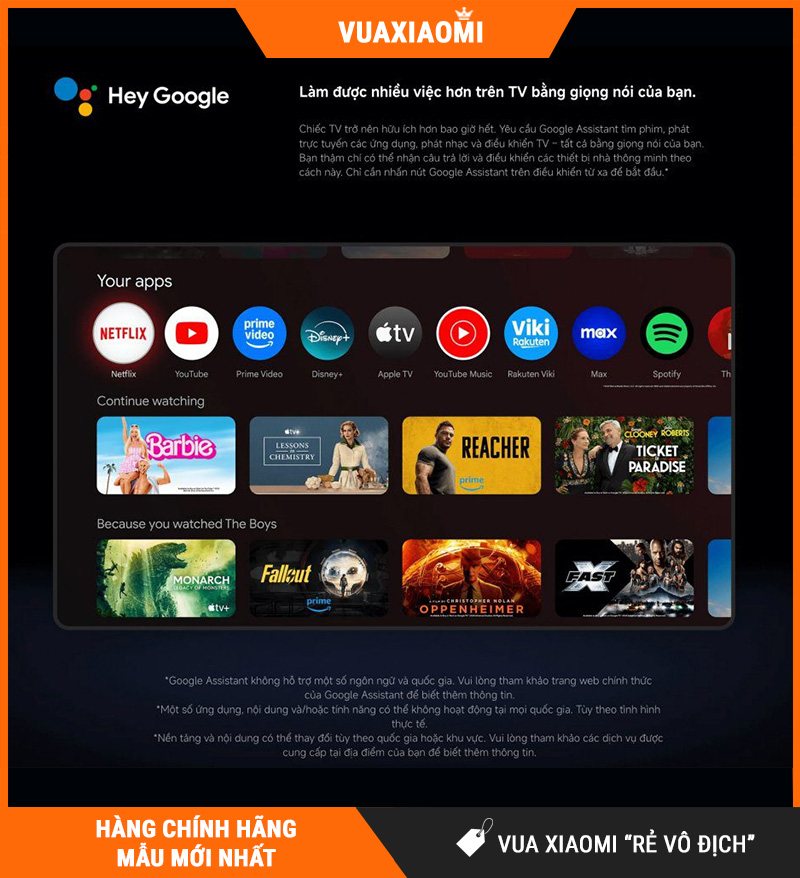 | Hệ điều hành | Google TV (giao diện mới, hỗ trợ tiếng Việt) |