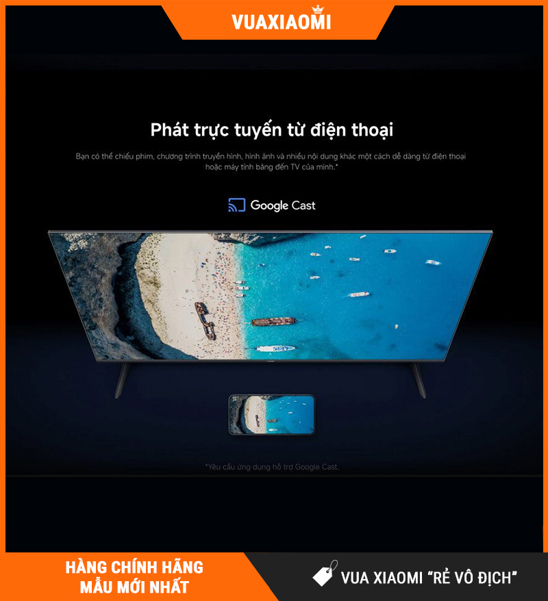 Chromecast built-in (có sẵn): Phát video, hình ảnh, nhạc từ điện thoại Android, iPhone, máy tính bảng lên tivi