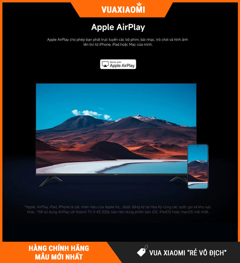 Xiaomi A43 4K hỗ trợ đầy đủ các công nghệ chia sẻ màn hình không dây hiện đại: