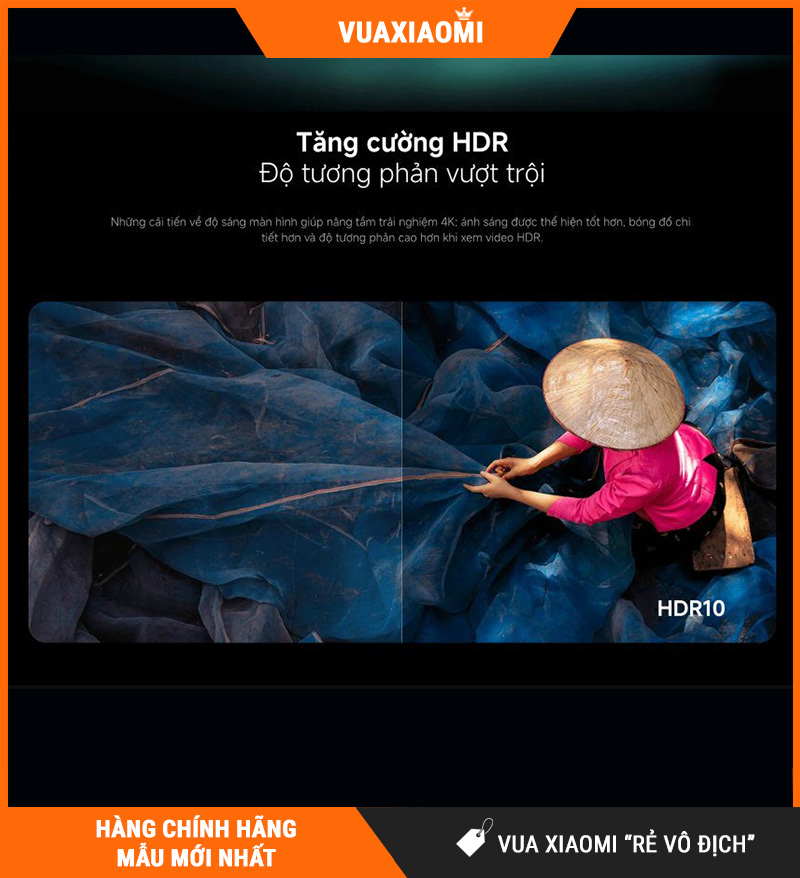 Một trong những nâng cấp quan trọng của Tivi Xiaomi A43 4K chính là khả năng hiển thị dải tương phản động cao (HDR). Công nghệ HDR Enhance giúp mở rộng dải sáng – tối, làm cho hình ảnh rõ nét hơn trong vùng tối, và không bị cháy sáng ở các vùng có ánh sáng mạnh.