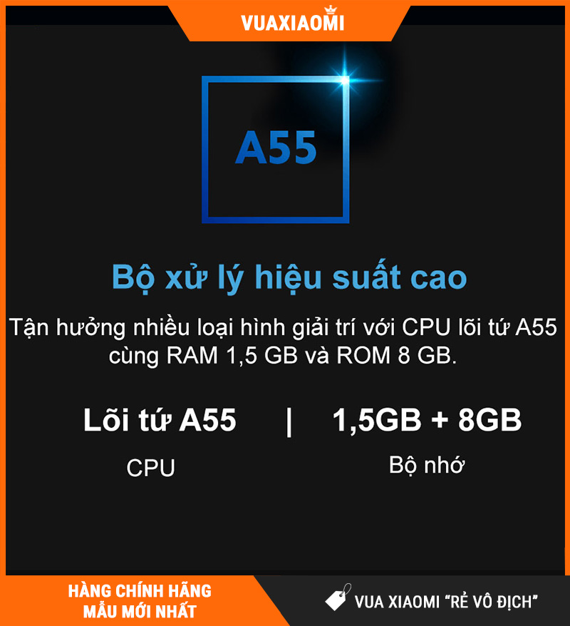 | Chip xử lý | CPU: Quad-core Cortex A55 |
