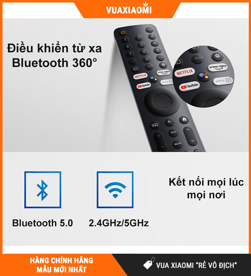 Kết nối Bluetooth 360° giúp remote hoạt động linh hoạt: bạn có thể điều khiển từ mọi góc trong phòng, không cần phải hướng trực tiếp về phía tivi như điều khiển hồng ngoại truyền thống.