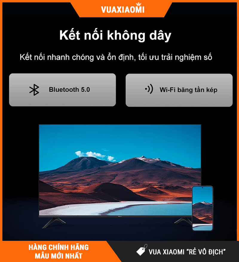 Xiaomi A55 được trang bị kết nối Wi-Fi băng tần kép 2.4GHz/5GHz cùng với Bluetooth 5.0, mang lại tốc độ kết nối cực kỳ ổn định và mượt mà: