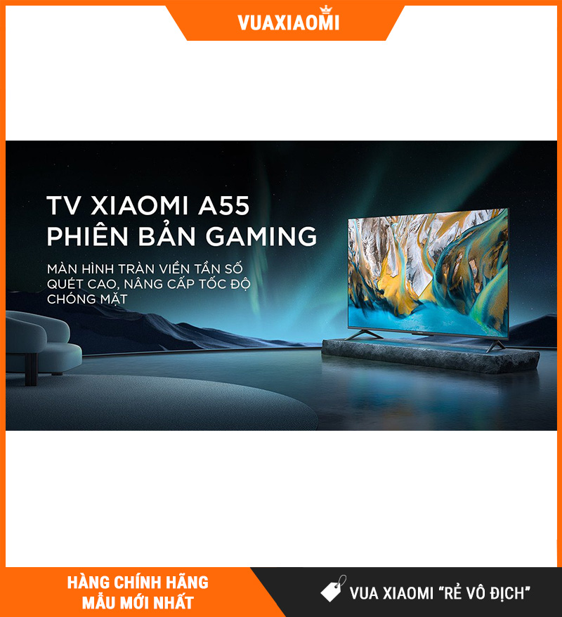 Tivi Xiaomi Redmi A55 4K là mẫu TV thông minh bản nội địa đến từ thương hiệu nổi tiếng Xiaomi, nổi bật với màn hình lớn 55 inch, độ phân giải 4K UHD sắc nét, tần số quét 120Hz mượt mà, cùng hàng loạt công nghệ tối ưu hình ảnh – âm thanh – kết nối thông minh.