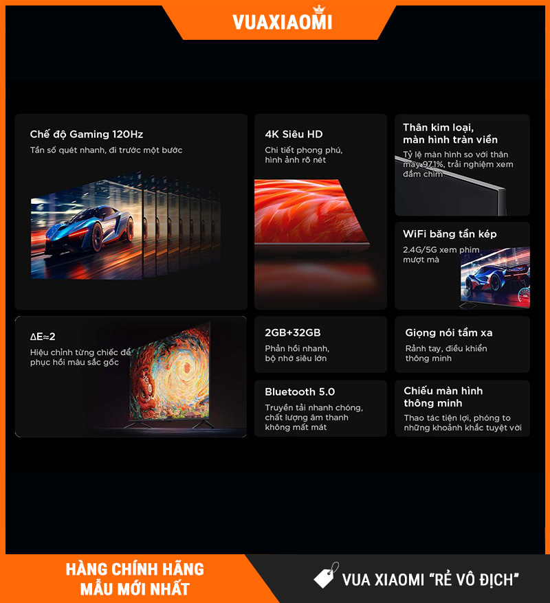 Với cấu hình mạnh RAM 2GB – ROM 32GB, hệ điều hành Google TV, công nghệ MEMC và chế độ Game Boost hỗ trợ chơi game 120Hz, đây là lựa chọn lý tưởng cho gia đình trẻ, tín đồ điện ảnh hoặc game thủ console muốn trải nghiệm mượt mà trên màn hình lớn.