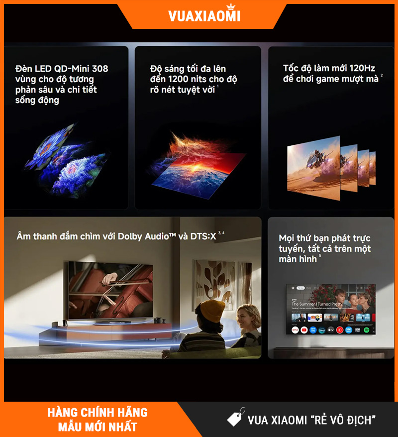 Điểm thu hút của mẫu tivi này không nằm ở một công nghệ đơn lẻ mà đến từ sự kết hợp của nhiều yếu tố. Từ QD-Mini LED, 384 vùng sáng, độ sáng tối đa 1200 nits, công nghệ màu QLED Quantum Dot, cho tới hệ điều hành GoogleTV™, tất cả đều hướng tới mục tiêu mang lại trải nghiệm xem trọn vẹn hơn. Đây là lựa chọn phù hợp với người dùng muốn nâng cấp từ các mẫu tivi LED phổ thông lên một thiết bị có khả năng hiển thị tốt hơn, thông minh hơn và đáng giá hơn trong sử dụng lâu dài.