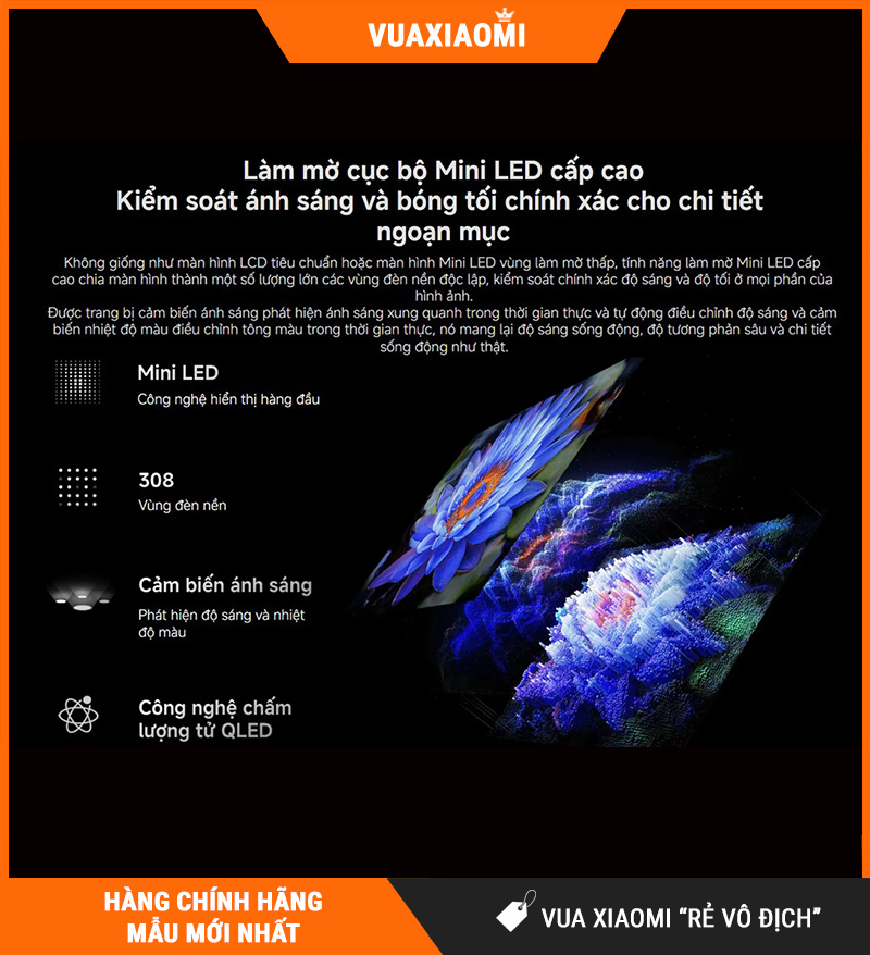Công nghệ Mini Led 308 vùng sáng giúp kiểm soát ánh sáng linh hoạt
