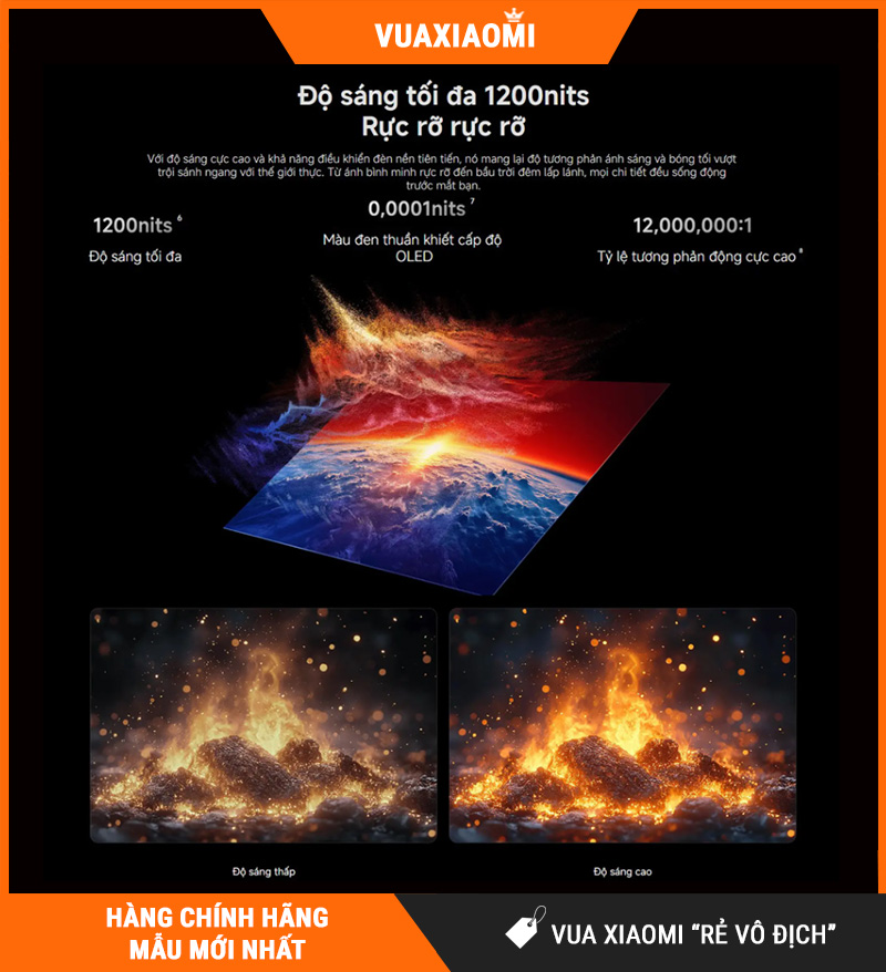 Độ sáng cực cao 1200 nits