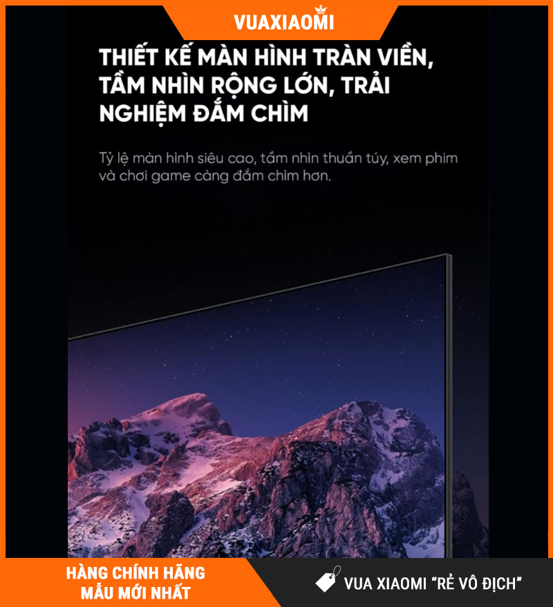 Tivi Xiaomi Redmi A65 4K sở hữu thiết kế hiện đại với màn hình tràn viền siêu mỏng ở cả 3 cạnh, tạo nên hiệu ứng hiển thị mở rộng tối đa, giúp: