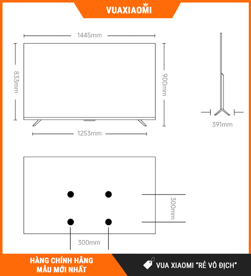 | Kích thước (có chân đế) | ~ 1445 x 300 x 895 mm (tham khảo) |