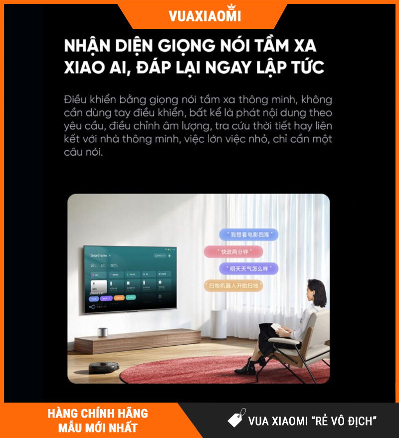 Một tính năng thông minh đáng giá trên Redmi A65 là micro thu giọng nói tầm xa (Far-field voice recognition), cho phép người dùng: