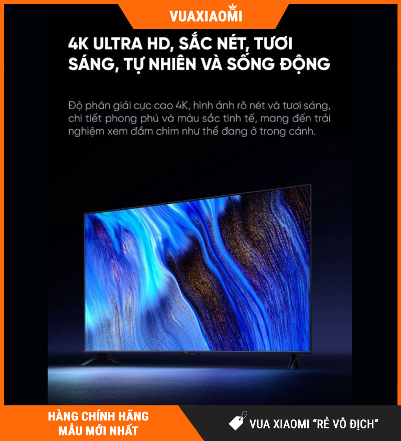 Xiaomi Redmi A65 4K 120Hz là chiếc smart TV nổi bật trong phân khúc giá tầm trung nhưng lại sở hữu nhiều công nghệ vượt trội thường chỉ có trên dòng TV cao cấp. Với màn hình lớn 65 inch, độ phân giải 4K Ultra HD, tần số quét lên đến 120Hz, cùng hệ điều hành thông minh, tivi này mang lại trải nghiệm xem phim, chơi game và giải trí đỉnh cao cho gia đình hiện đại.