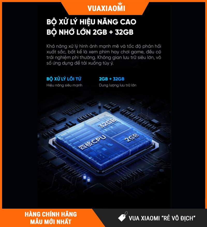 RAM 2GB + ROM 32GB: lưu trữ nhiều ứng dụng, cài game, xem phim không lo đầy bộ nhớ