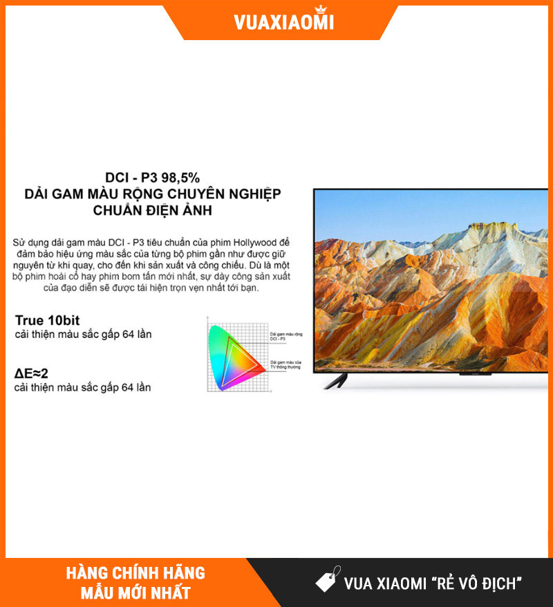 DCI-P3 là chuẩn gam màu thường dùng trong phim ảnh/cinema. Khi đạt 98.5% DCI-P3, TV hiển thị màu phong phú và sát với ý đồ nhà làm phim hơn, đặc biệt khi xem nội dung chất lượng cao.