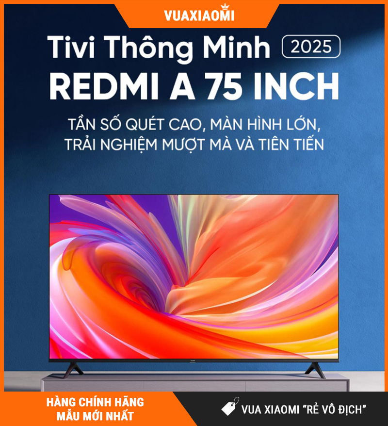 Sản phẩm: Tivi Xiaomi Redmi A75 75 inch 4K (RAM 2GB / ROM 32GB / 120Hz) — là lựa chọn màn hình lớn ở phân khúc hợp lý.
