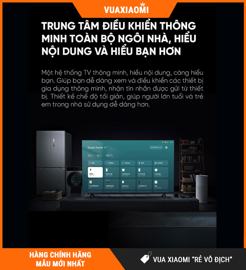 Có thể kết nối và điều khiển các thiết bị thông minh khác (như đèn, điều hòa, loa) nếu trong hệ sinh thái hỗ trợ – tạo nên môi trường “smarthome” tích hợp. (dù thông tin chi tiết không rõ hết ở bản nội địa nhưng là hướng chung của dòng TV thông minh)