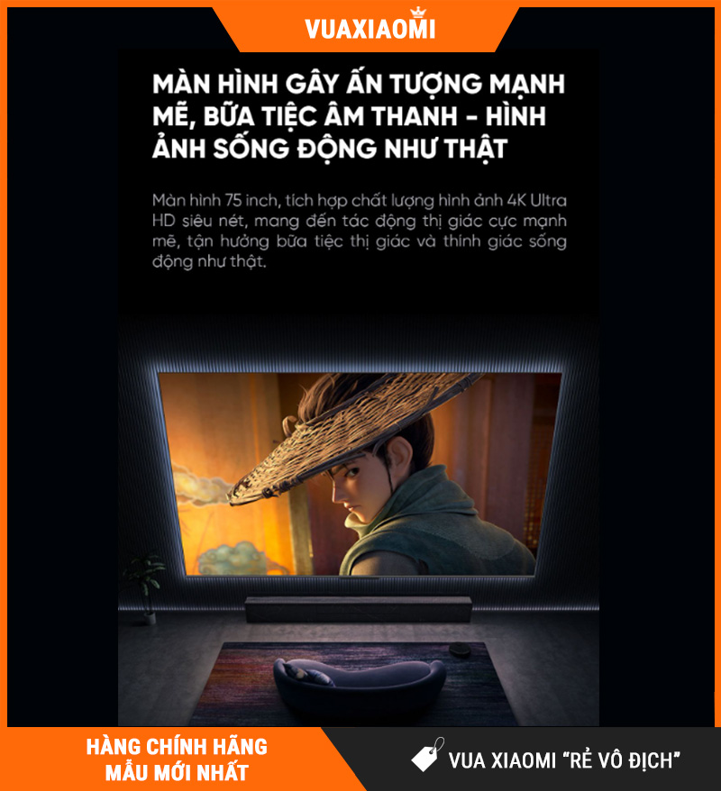 Màn hình lớn 75 inch – phù hợp cho phòng khách rộng hoặc muốn trải nghiệm điện ảnh tại gia.