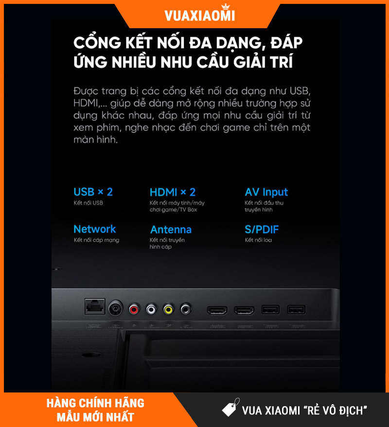 Các cổng kết nối đa dạng: HDMI, USB, AV… cho phép bạn kết nối laptop, máy chơi game, USB…