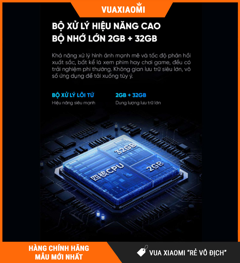 | Bộ xử lý / Bộ nhớ | ● CPU lõi tứ (Cortex A35) ● RAM: 2GB / ROM: 32GB |