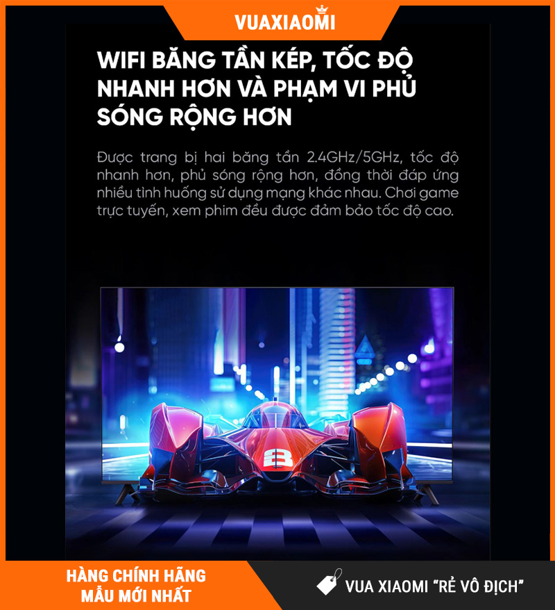 Hỗ trợ WiFi băng tần kép 2,4GHz / 5GHz giúp kết nối mạng ổn định, tốc độ cao, phù hợp với việc xem phim 4K, streaming và chơi game online.