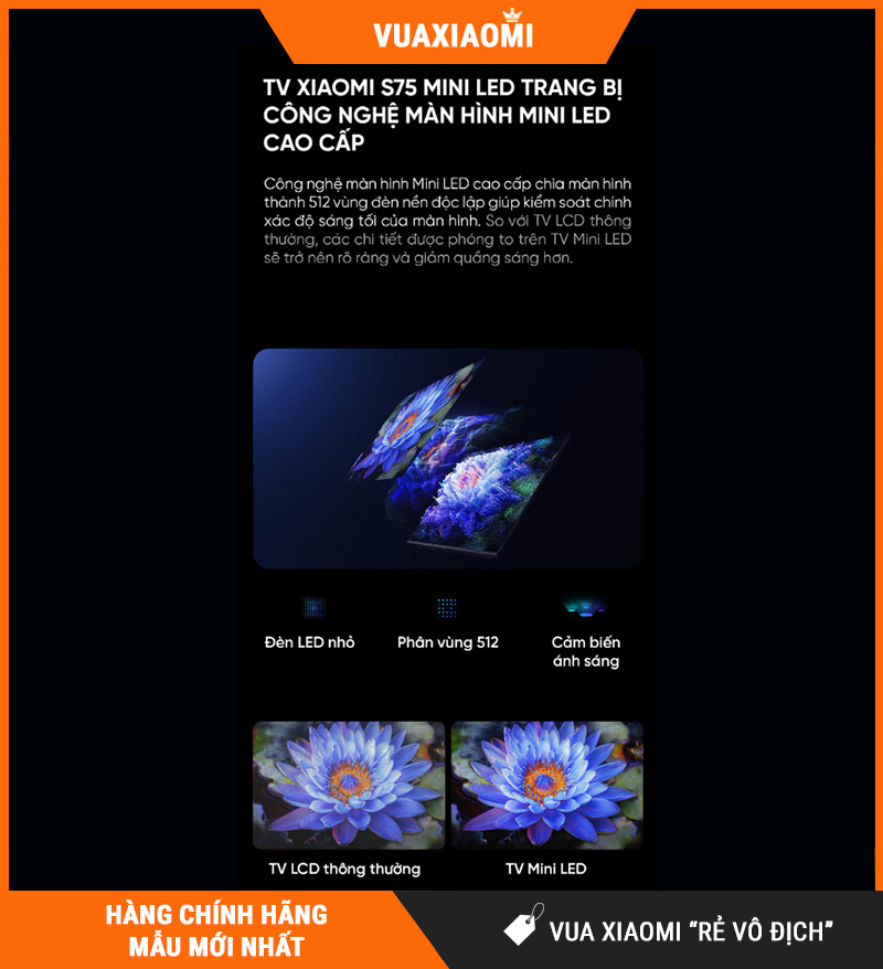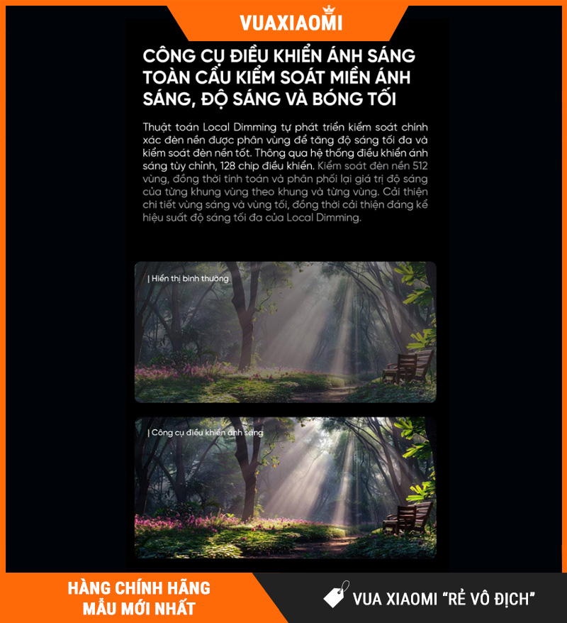 | Công nghệ hiển thị | Mini LED – Local Dimming nhiều vùng sáng |