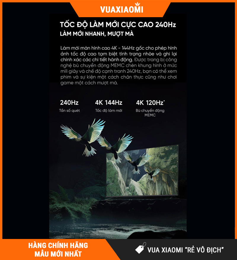 | Tần số quét | 240Hz – Hỗ trợ MEMC + AI-SR |
