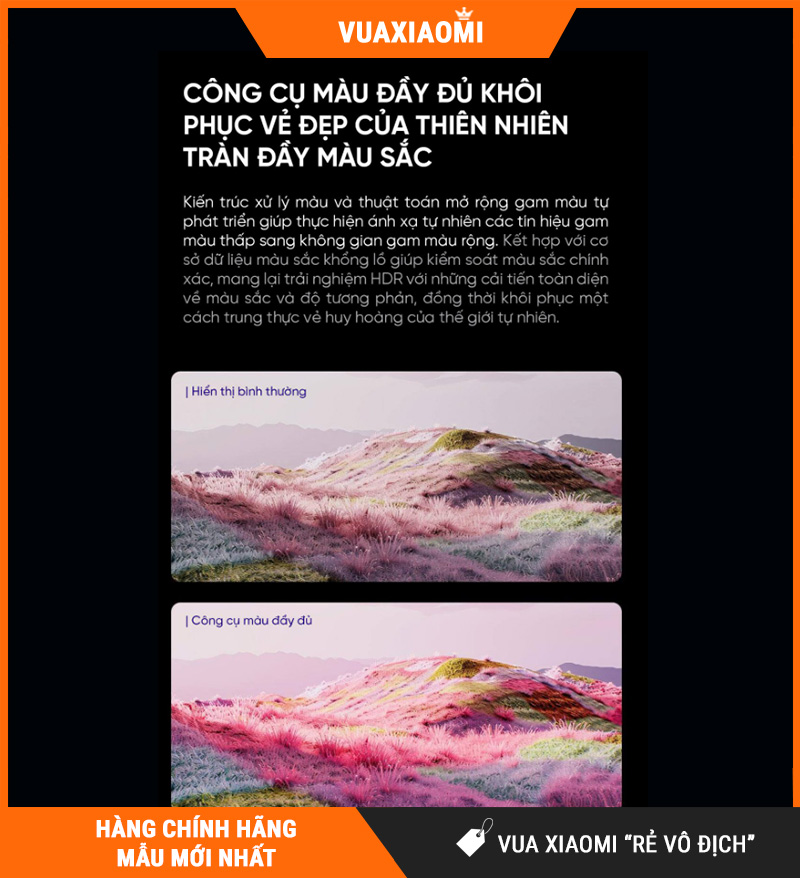 Tivi Xiaomi S75 Mini LED được trang bị thuật toán khôi phục đa màu (Multi-color Recovery) cùng khả năng điều chỉnh nhiệt độ màu thông minh, giúp tái tạo hình ảnh gần với thực tế hơn, giảm tình trạng sai lệch màu thường thấy ở các dòng tivi giá rẻ.