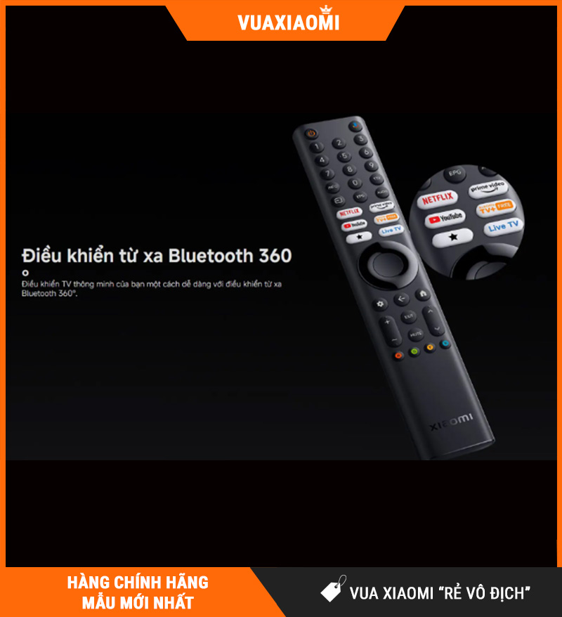Đi kèm với TV là điều khiển Bluetooth 360°, một nâng cấp nhỏ nhưng rất đáng giá trong trải nghiệm sử dụng thực tế. So với điều khiển hồng ngoại, remote Bluetooth linh hoạt hơn nhiều vì không cần chĩa chính xác về phía màn hình.